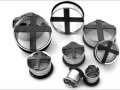 Black Cross Steel Tunnel Plugs (0G - 1 Inch) UrbanBodyJewelry.com body piercing valparaiso | |